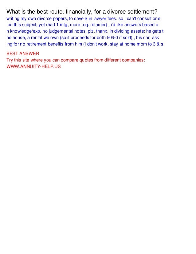 Property Or Income Appeal Court Rules On Structured Settlement Annuities Familyllb from structuredsettlementnfo.files.wordpress.com If the annuity is a non qualified tax deferred annuity (an annuity that taxes were paid on the money before they were placed into the annuity) you will pay taxes on any interest growth when it is removed from the annuity. The settlement agreement is a crucial part of your divorce case. 30 faqs about divorce settlements.